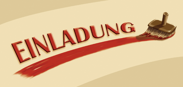 Gestaltungsbeispiele für Postkarten (oben) und einer Einladungskarte (links) mit Schrift- und Grafikinhalten sowie Elemente Digitaler Malerei